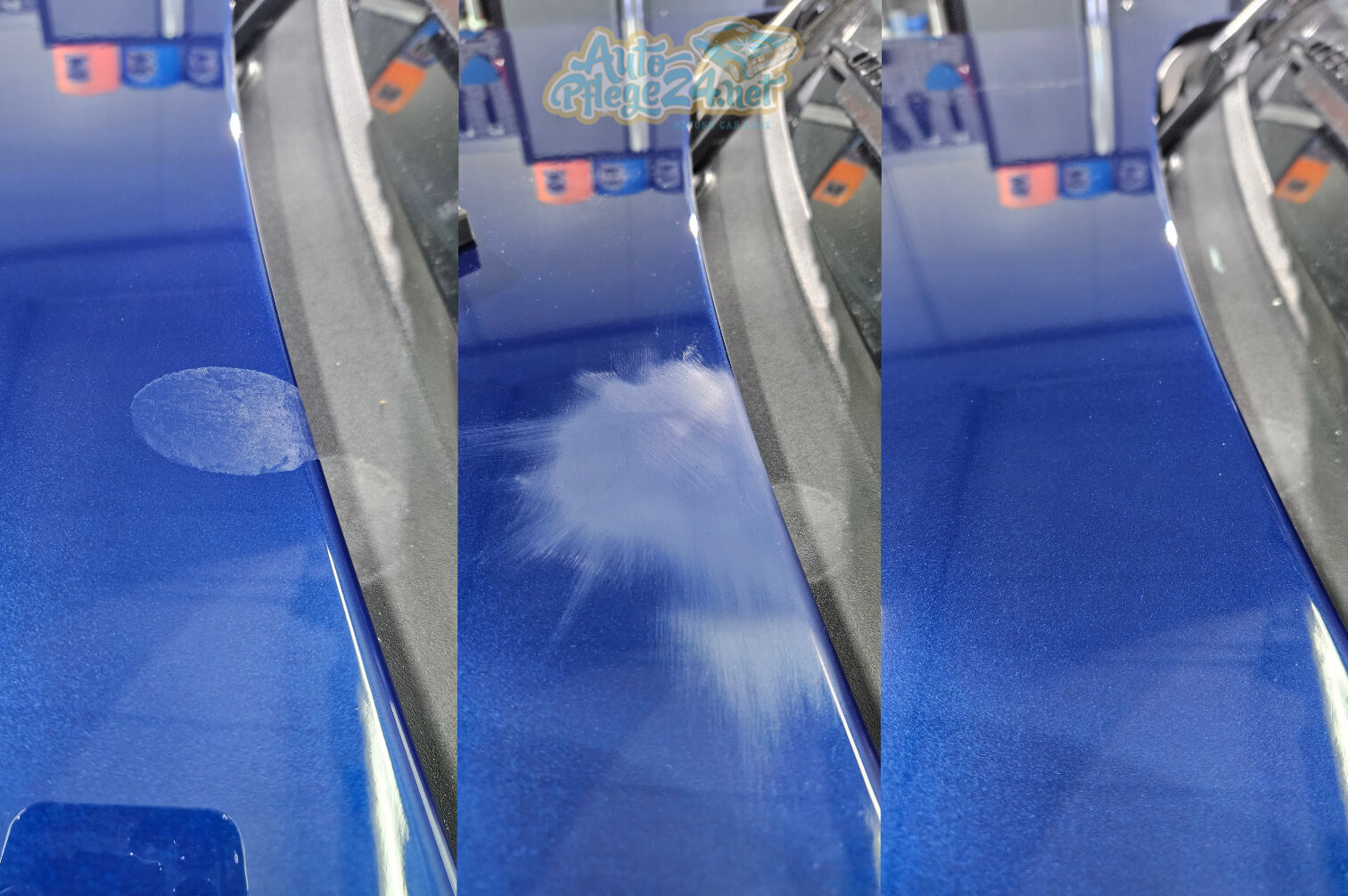 Im zweiten Polierschritt wurde der Grauschleier vollständig entfernt. Erst jetzt kam die volle Farbtiefe des Estorilblau Metallic wieder zur Geltung. Der Lack wirkte deutlich klarer, frischer und lebendiger.